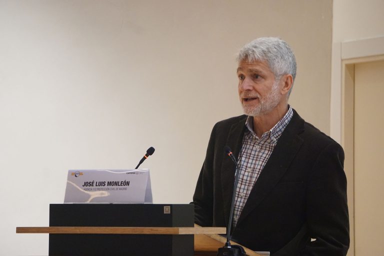 La siguiente intervención correspondió a José Luis Monleón (Agencia 112, Protección Civil de Madrid). Que presentó la ponencia “Gestión Operativa de la Emergencia: Avisos Previos, Movilización, CECOP/PI, PMA. Avisos Masivos a la Población Mediante el ES-ALERT: Configuración y Casos Prácticos”. En esta ponencia se expusieron los modelos de gestión operativa de las emergencias, ordinarias y extraordinarias, en la Comunidad de Madrid. Respecto a estas últimas se expuso el ejemplo real de las actuaciones en las inundaciones de Marzo de 2025 en la CAM para cuya gestión se activaron y coordinaron varios planes: INUNCAM, Planes Municipales y PEPS.