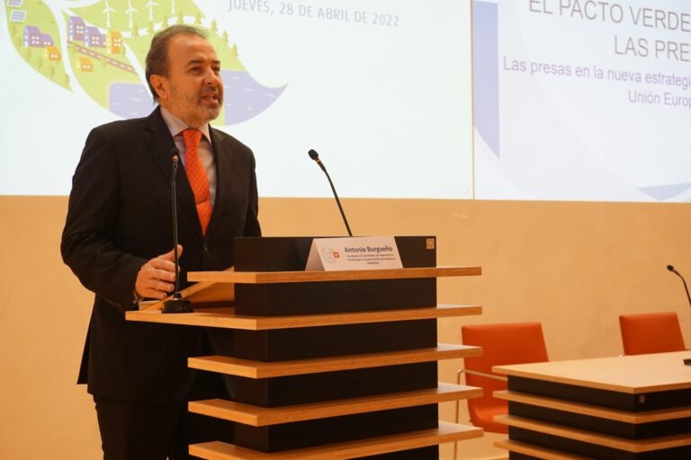 En la introducción Antonio Burgueño hizo una breve presentación del documento en redacción  “El Pacto verde Europeo y las Presas” en elaboración por el Comité Técnico de Spancold de Actividades del Ingeniero en Planificación de Recursos Hidráulicos. Este documento trata tres temas generales: La integración de sistemas energéticos, La adaptación al cambio climático y Estrategia de Biodiversidad.