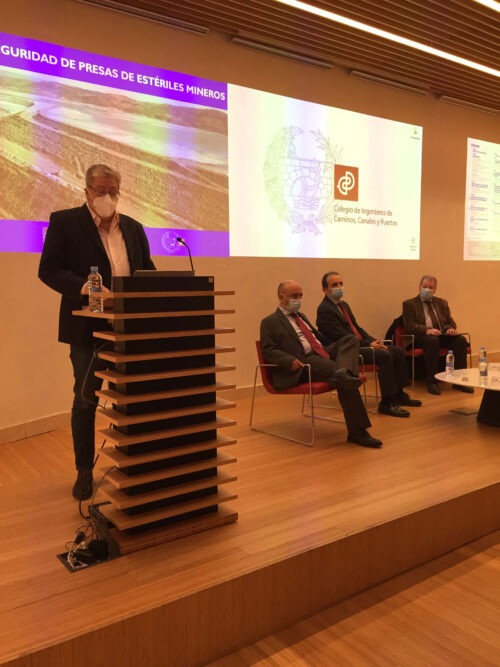Posteriormente, Claudio Olalla (Catedrático de la Escuela Técnica Superior de ICCP de la UPM) realizó un emotivo homenaje a Antonio Soriano Peña, fallecido en 2019, eminente ICCP, secretario durante más de 10 años del Club Europeo de Presas, Vocal de SPANCOLD y miembro de la Comisión Delegada del mismo. Seguidamente realizó una interesante exposición sobre las patologías más frecuentes de las presas de estériles, centrándose en algunas de las roturas, accidentes e incidentes nacionales y mundiales más significativos de los últimos años.