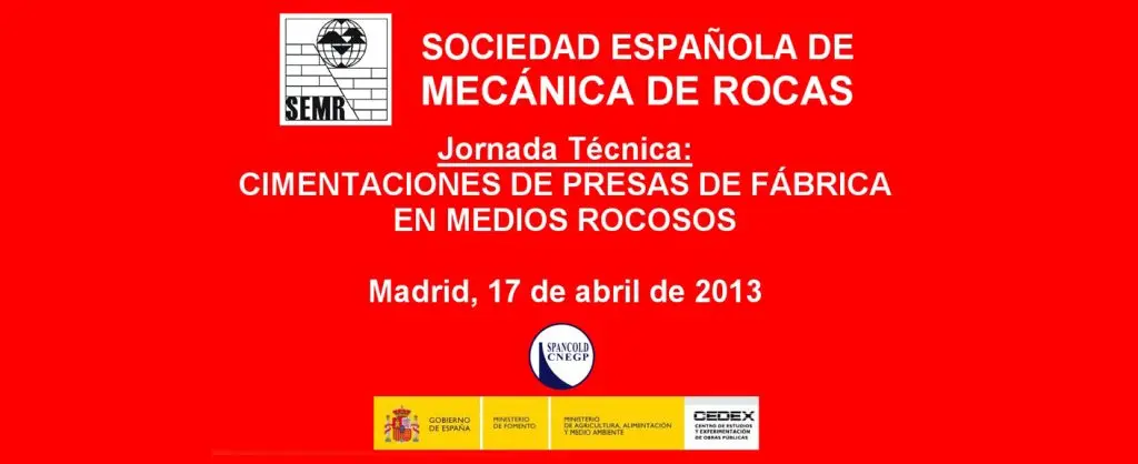 La Sociedad Española de Mecánica de Rocas (SEMR) organiza un año más su Jornada Técnica anual, conjuntamente con el Centro de Estudios y Experimentación de Obras Públicas (CEDEX) y con la colaboración, en esta ocasión, del Comité Español de Grandes Presas (SPANCOLD). El tema de esta nueva Jornada está relacionado con la cimentación de presas de fábrica, con especial hincapié en algunos aspectos que suponen una particular dificultad.