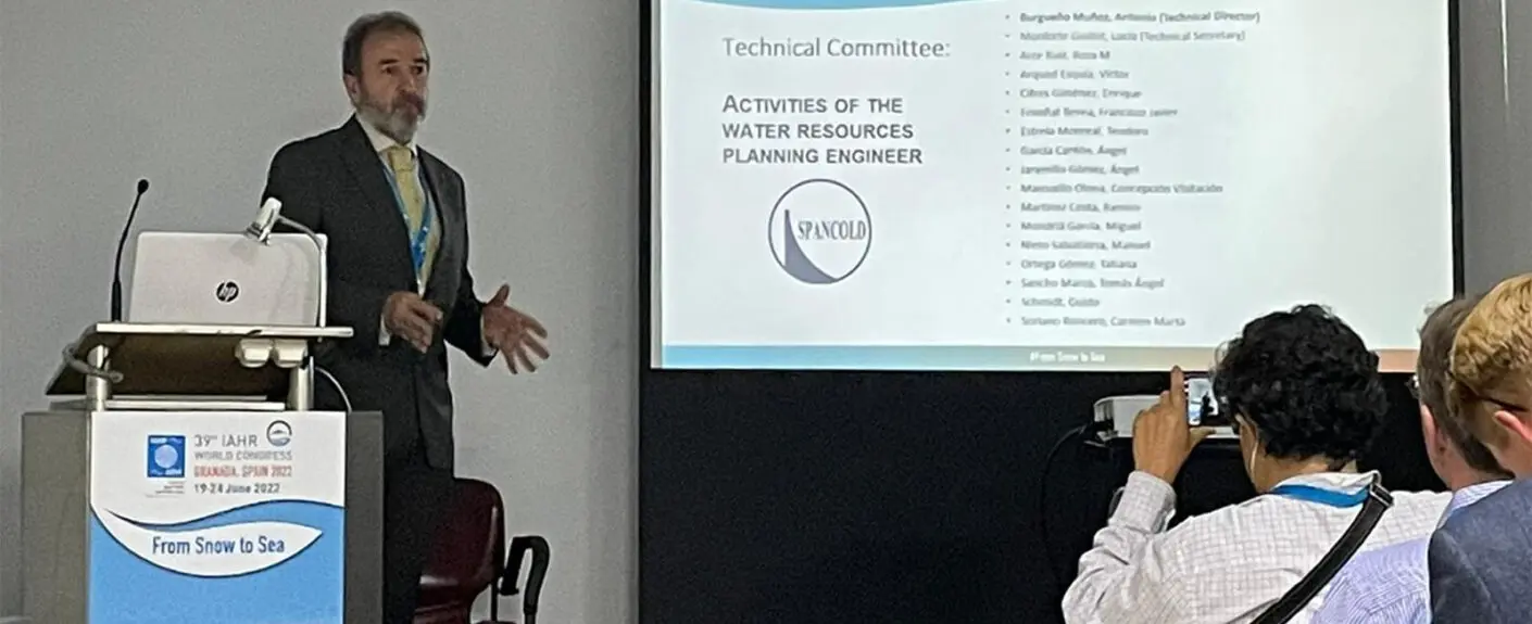 Durante el 39 Congreso Mundial IAHR, celebrado en Granada el pasado mes de junio, Antonio Burgueño, Director del Comité de Planificación y Gestión del Agua de SPANCOLD, presentó el documento “Gobernanza de Presas y Embalses”. La presentación se engloba dentro de las actividades acordadas en el recientemente firmado convenio de colaboración entre SPANCOLD y la IAHR.